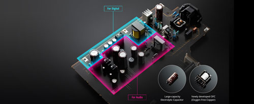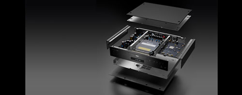Thick aluminium treated with alumite is used for the front and side panels. This helps to reduce vibration and increase chassis rigidity to support high sound quality while providing a design that is ideally suited to a reference class model