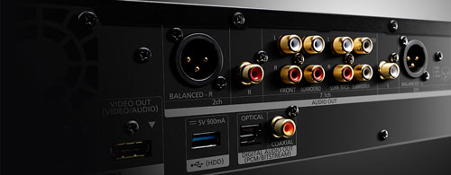 The 2 channel and 7.1 channel output terminals are also separated. The 2 channel output is equipped with a balanced XLR output terminal in addition to the RCA terminal