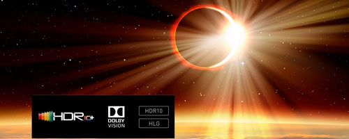 - HDR10 + Dolby Vision + Hybrid Log Gamma